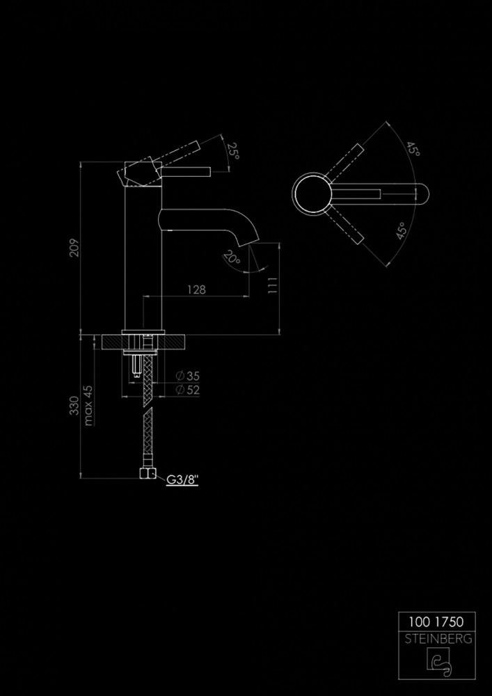 STEINBERG SERIA 100 Bateria umywalkowa bez korka Chrom 100.1750 / 1001750