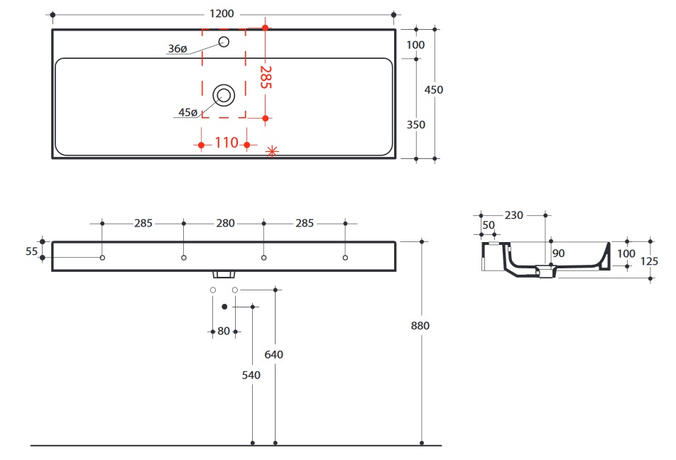 Kerasan Cento Umywalka Ścienna/Stawiana na Blat 120x45 cm Biała 353401