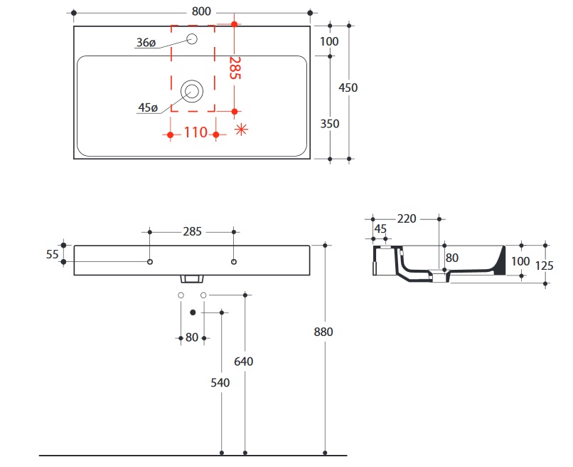 Kerasan Cento Umywalka Ścienna/Stawiana na Blat 80x45 cm Biała 353301