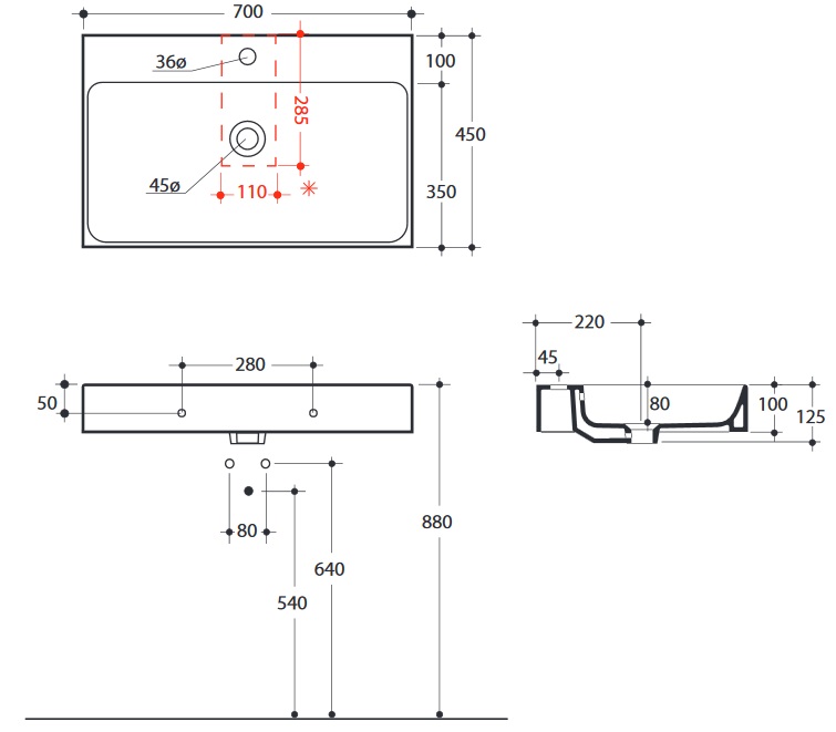 Kerasan Cento Umywalka Ścienna/Stawiana na Blat 70x45 cm Biała 353201