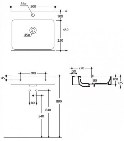 Kerasan Cento Umywalka Ścienna/Stawiana na Blat 50x45 cm Biały 353001