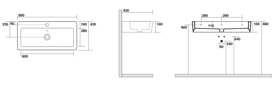 Kerasan Ego Umywalka Ścienna/Stawiana na Blat 90x43cm Biała 325101