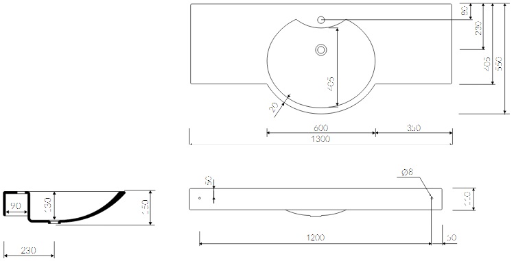 Marmorin Carme 130 Umywalka meblowa/nablatowa 130x55x15 cm Biały P_U_012_02_1300
