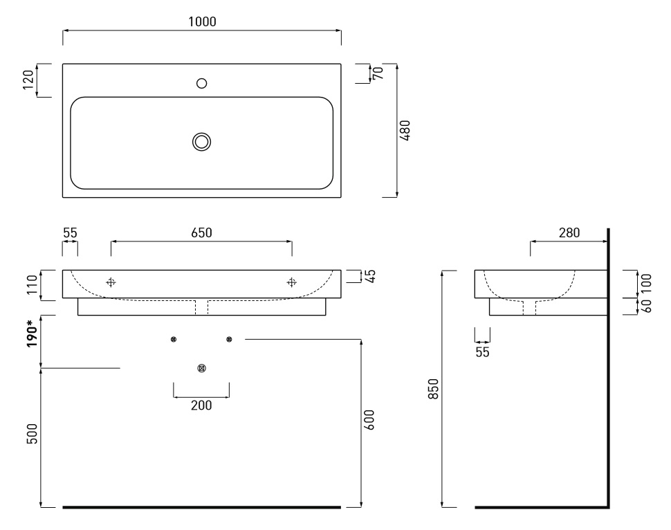 Cielo Smile Umywalka ścienna 100x48cm Biały SMLA100