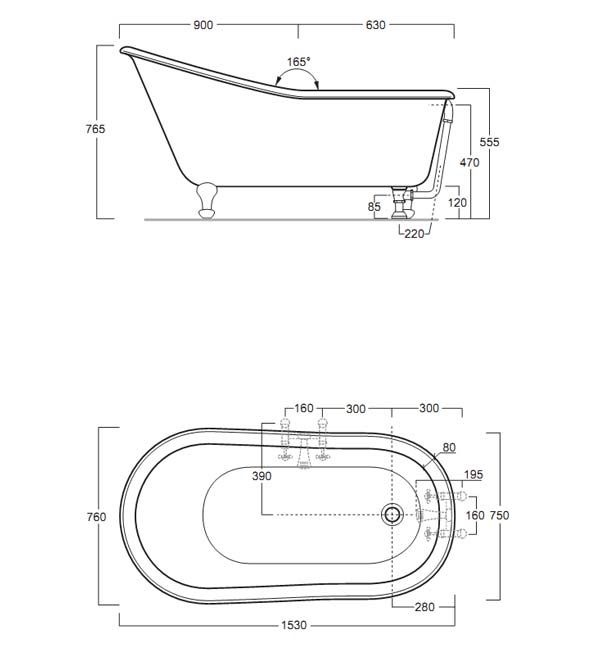 Simas Vasche de bagno Wanna żelazna emalia na zewnątrz i wewnątrz 153x76cm 30100