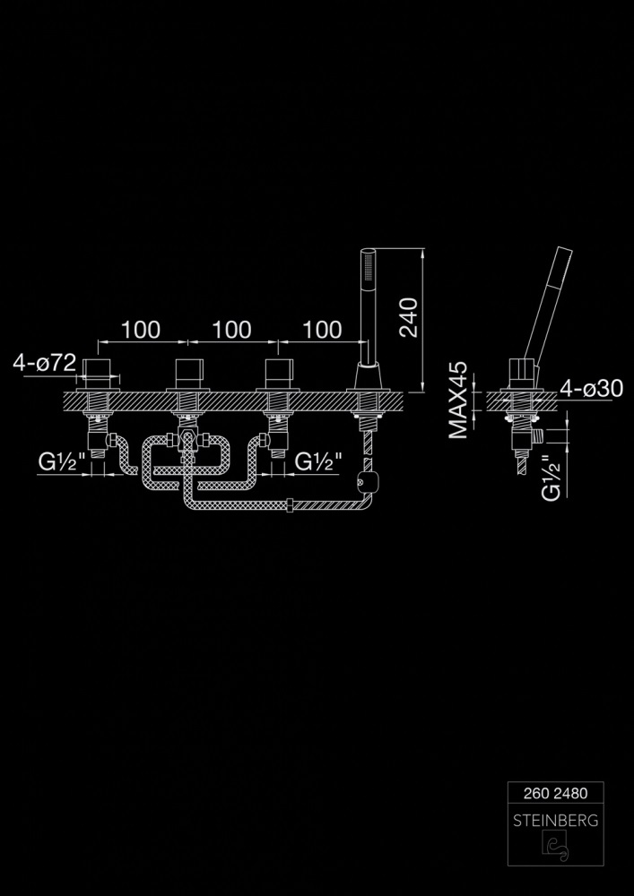STEINBERG SERIA 260 Bateria wannowo-natryskowa 4-otworowa Chrom 260.2480 / 2602480