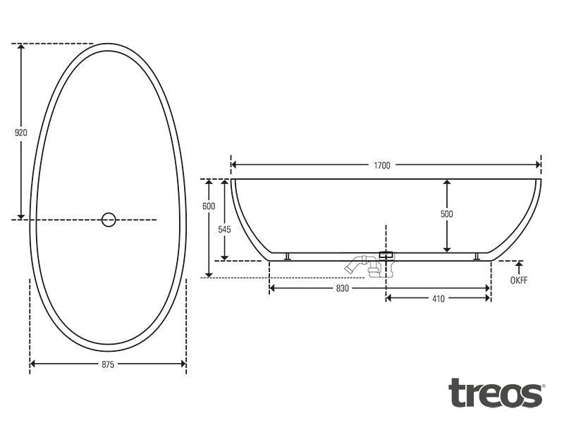 Treos 700 Wanna wolnostojąca 170x85 cm biała 700.04.1785