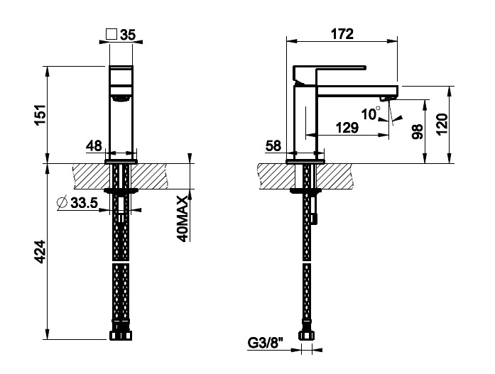 Gessi Rettangolo Bateria umywalkowa jednootworowa bez korka chrom 20002.031