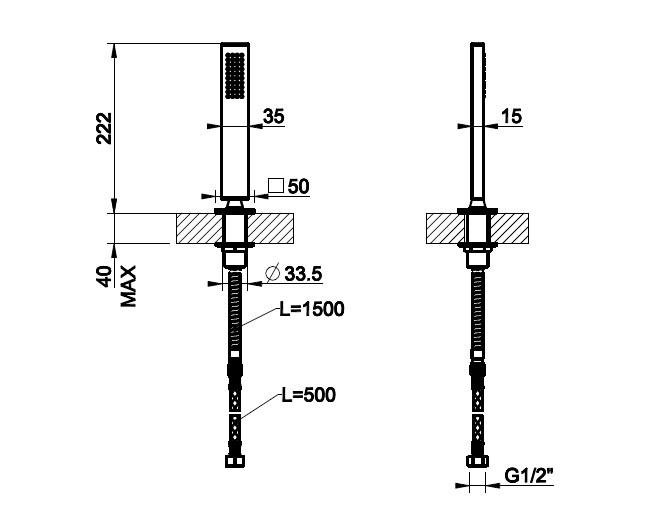 Gessi Rettangolo Słuchawka prysznicowa z wężem 150 cm chrom 20127.031
