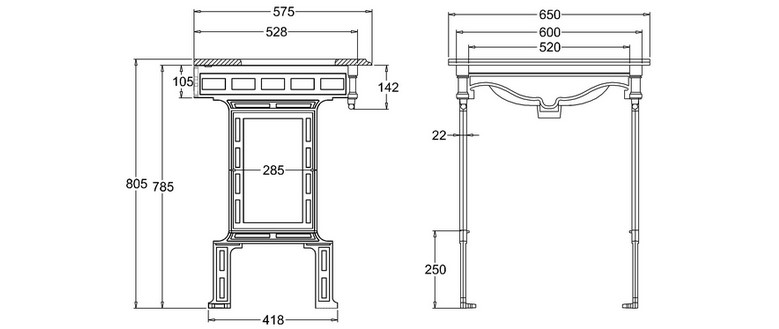 Burlington Classic Stelaż pod umywalkę 60x52,8 cm aluminium T38ALU