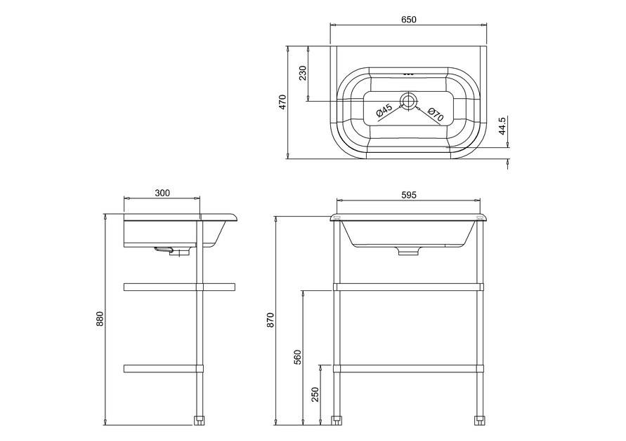 Burlington Chalfont Stelaż pod umywalkę 65x47 stal nierdzewna polerowana B8ES