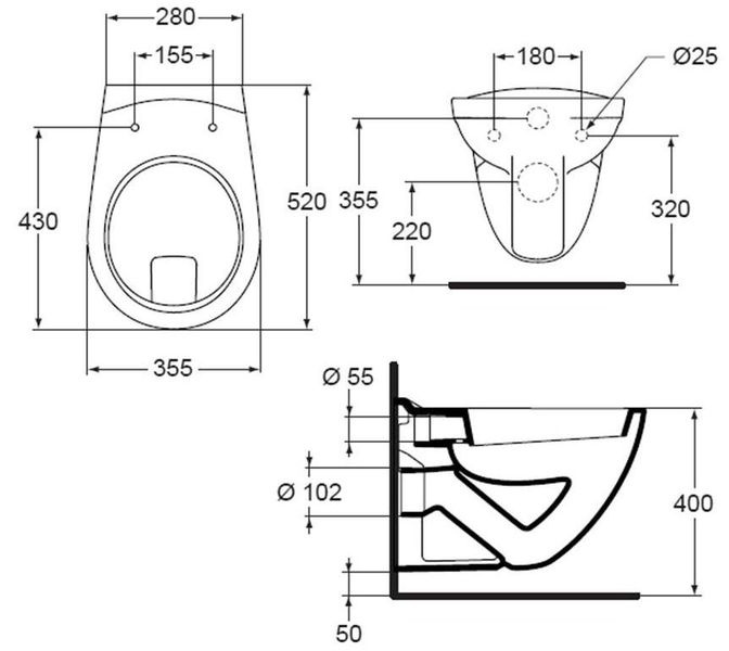 lub wolnoopadającą deską sedesową z duroplastu P5180.