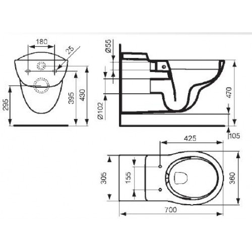Ideal Standard Contour 21 WC wiszący 36x70 cm biały S306901