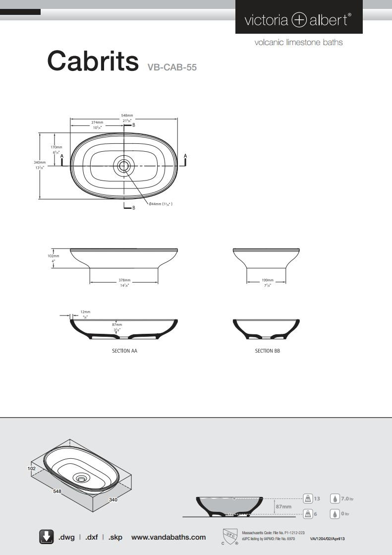 Victoria+Albert Cabrits 55 Umywalka nablatowa 55x34 cm Biała VB-CAB-55-NO