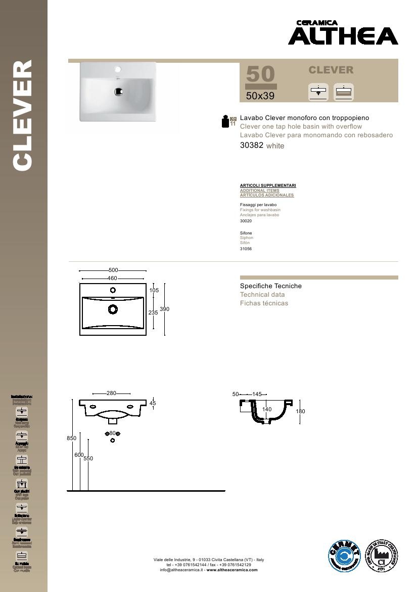 Althea Clever Umywalka wisząca / meblowa 50x39 biała 30382 W MAGAZYNIE !!!