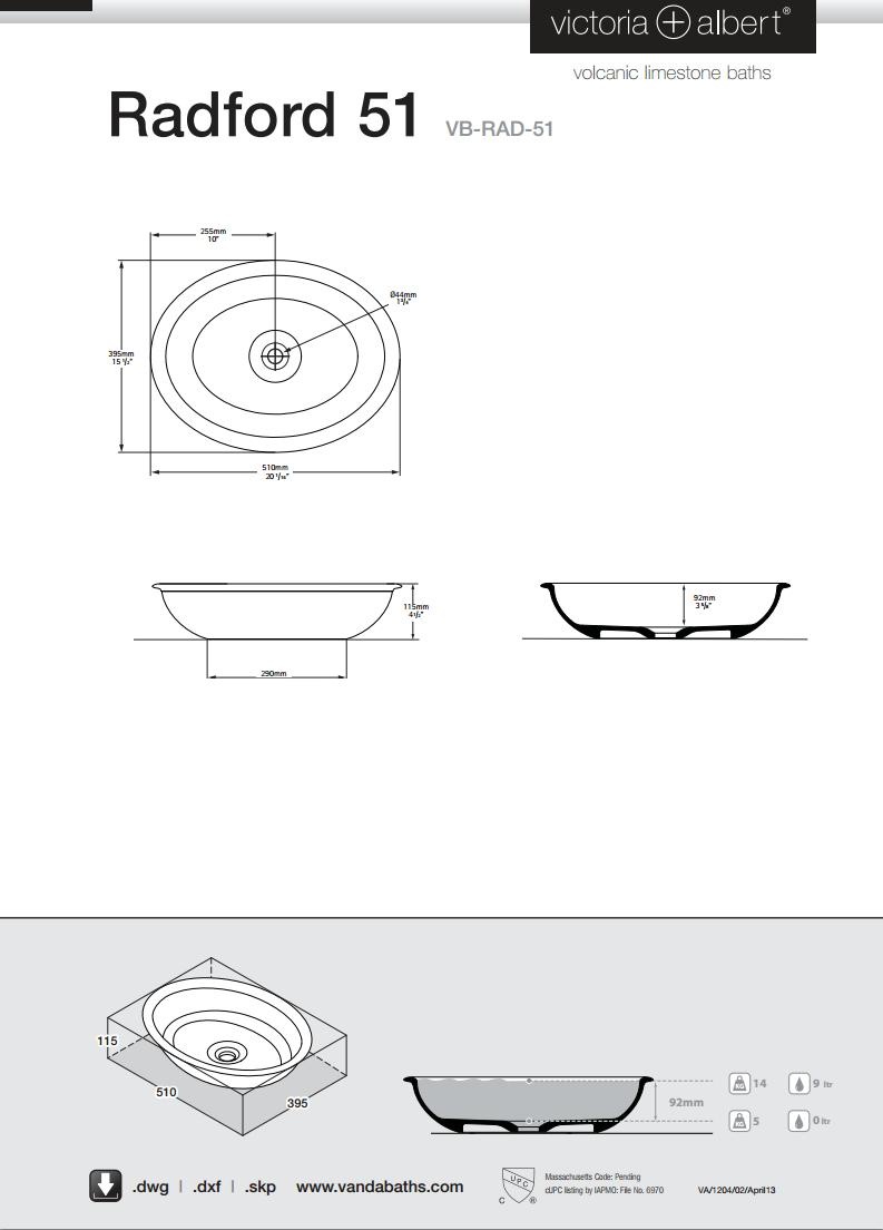 Victoria+Albert Radford Umywalka Stawiana na Blat 51x39,5cm Biała VB-RAD-51-NO