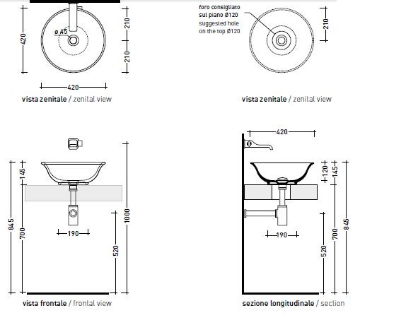 Flaminia Boll Umywalka stawiana na blat Ø 42 cm Biały BL42L
