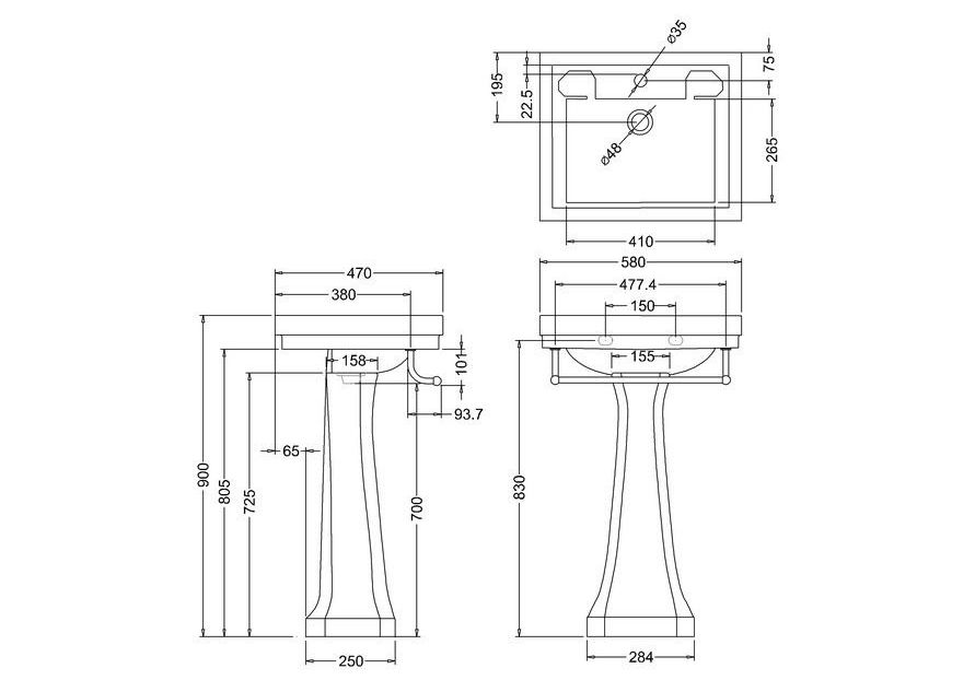Burlington Edwardian Regal Round Umywalka 56x47 biała B61TH