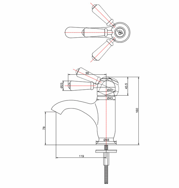 Burlington Chelsea Bateria umywalkowa 1-otworowa zakrzywiona Chrom CH21