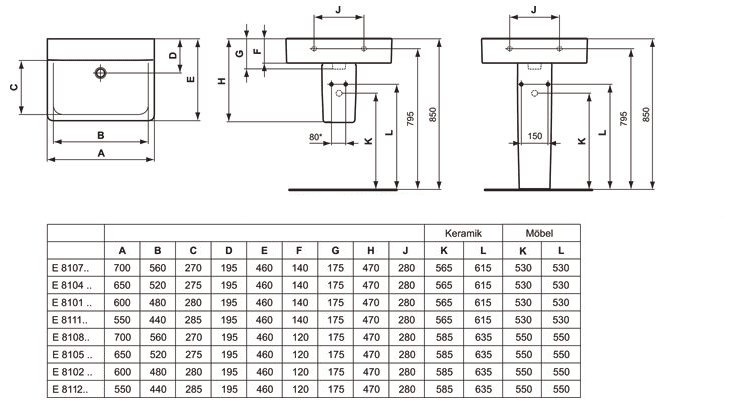 Ideal Standard Connect Cube Umywalka ścienna 65x46 cm biała E810501