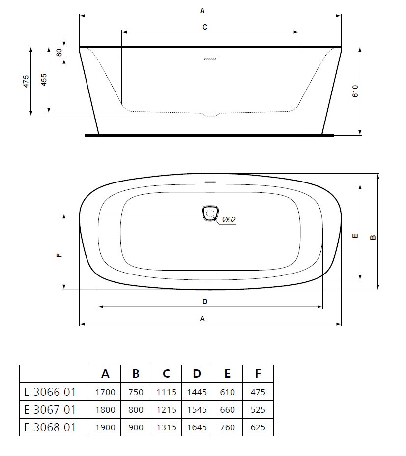Otwór na syfon Ø52 mm.