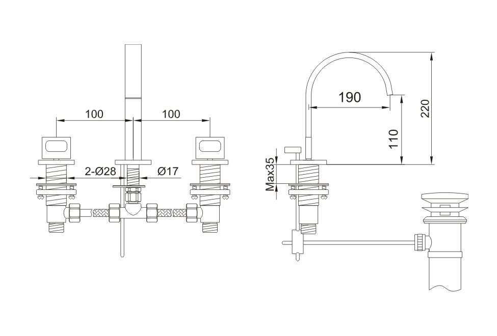 KOHLMAN NEXEN-S Bateria umywalkowa SQB202U