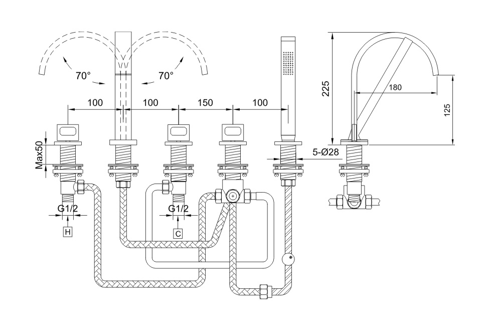 KOHLMAN NEXEN-S Bateria wannowa pięciootworowa SQB262U