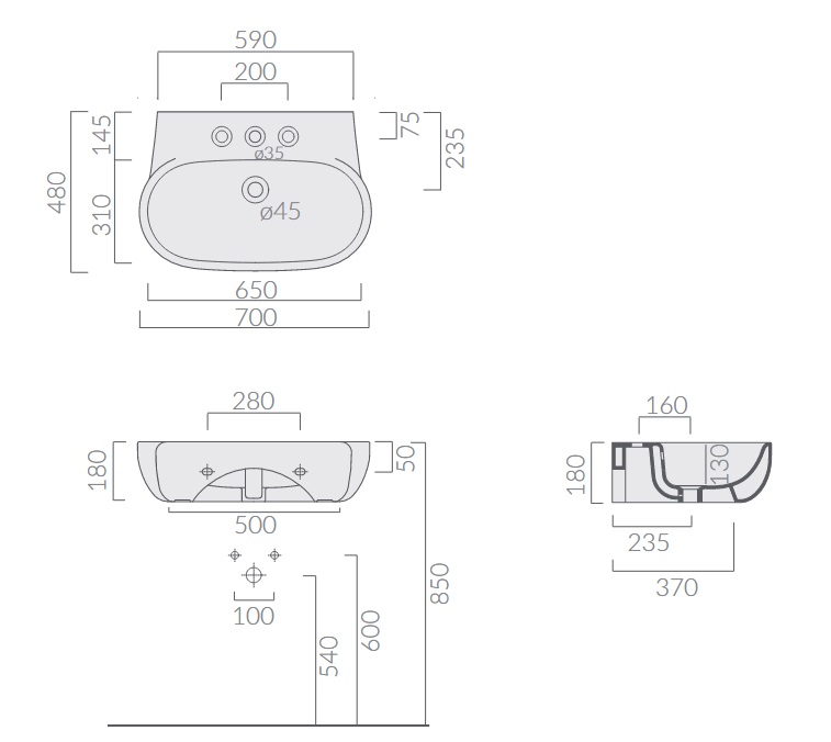 Galassia Ergo Umywalka ścienna 70x48 cm Biały 7120