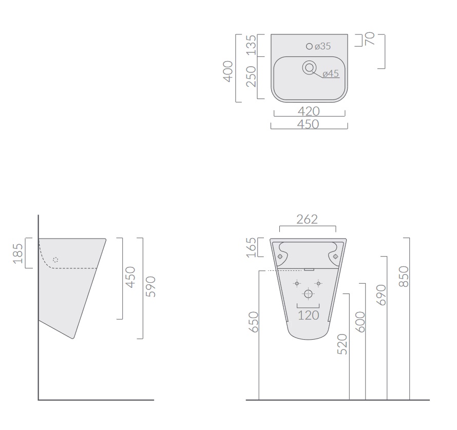 Galassia MEG 11 Umywalka ścienna 45x40 cm Biały mat 5407MMT