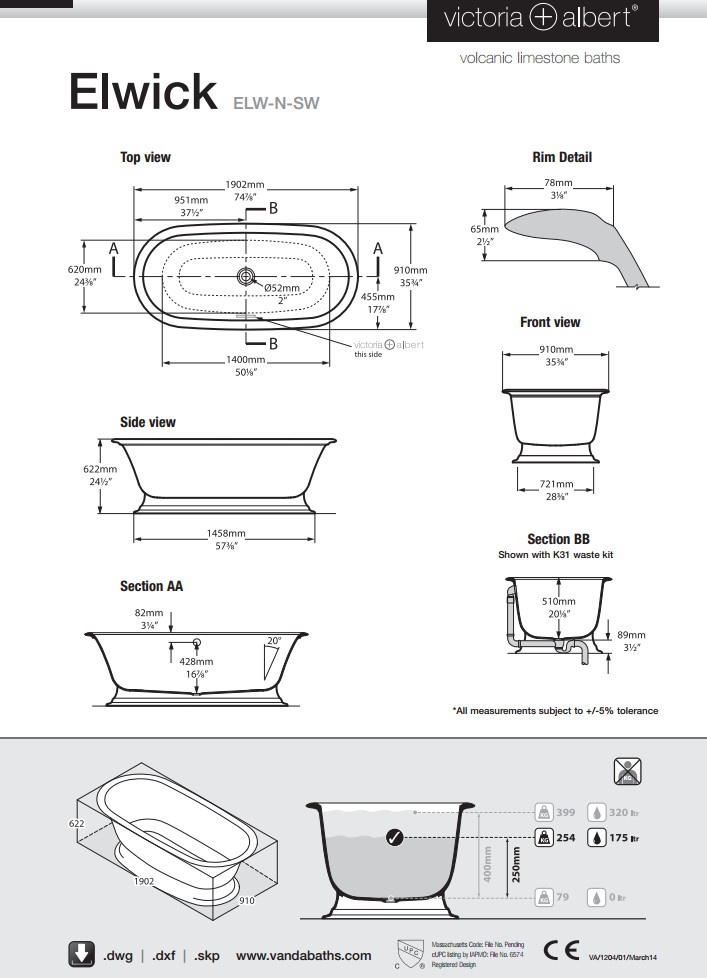 Victoria+Albert Elwick Wanna Wolnostojąca z podstawą 190x91cm Biała RAD-N-SW-OF+EL-WB-SW