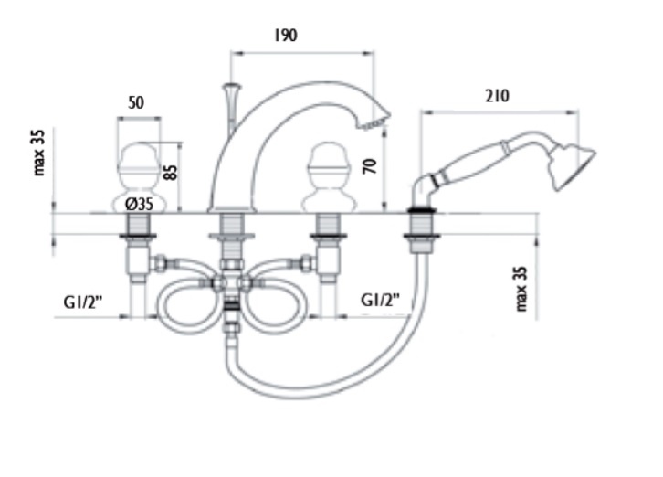 Giulini Giovanni Persia bateria wannowa 4-otworowa z prysznicem 3865/S