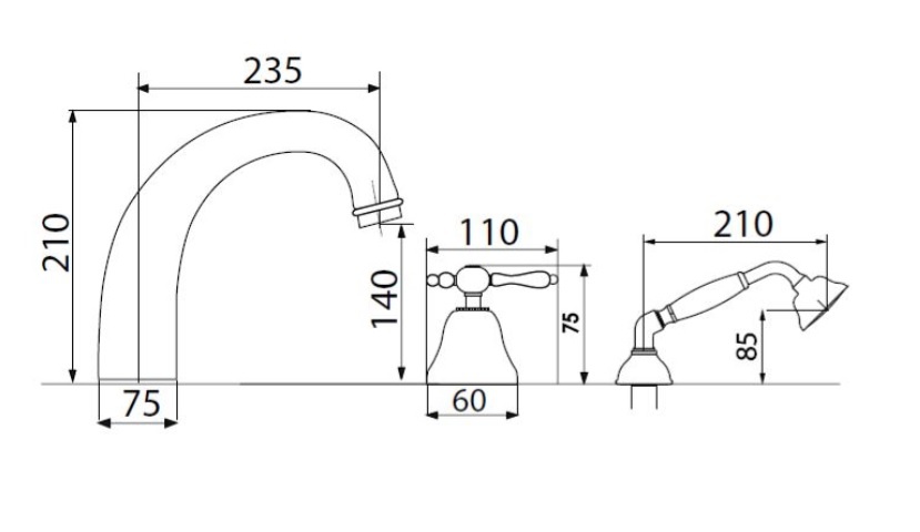 Giulini Giovanni Praga bateria wannowa 5-otworowa z prysznicem 7560