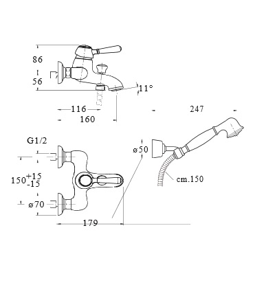 Cristina Art Elite bateria wannowa ścienna z prysznicem