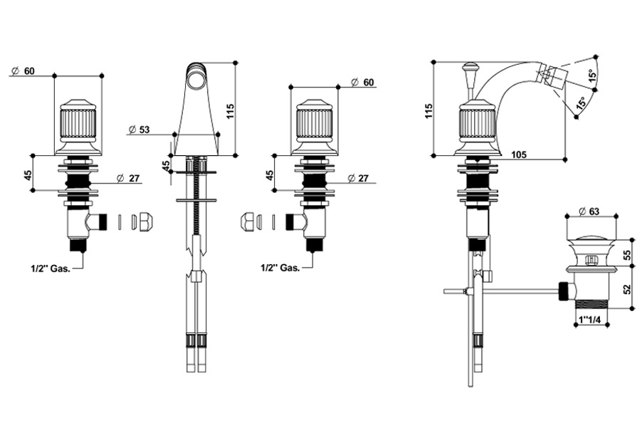 Bongio Cristallo bateria bidetowa 3-otworowa