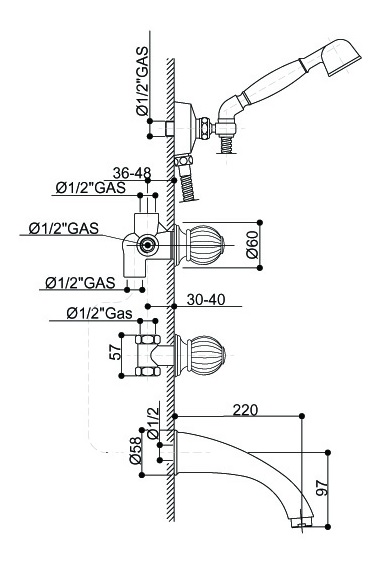 Bongio Rivolì bateria wannowa podtynkowa z prysznicem