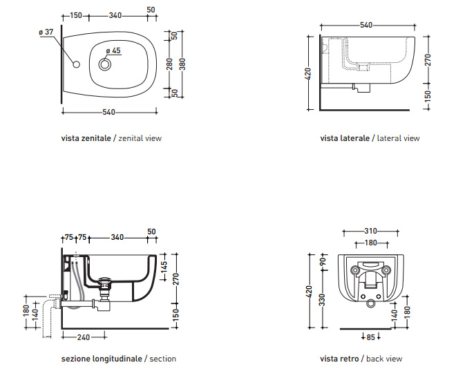 Flaminia Bonola Bidet wiszący 54x38 cm Biały BN218