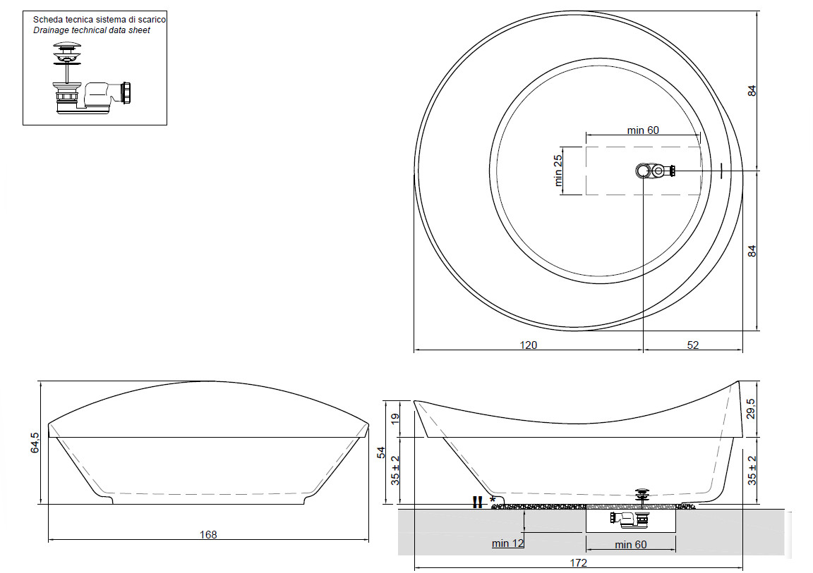 Antonio Lupi Dune Wanna do zabudowy 172x168 cm biała DUNE2