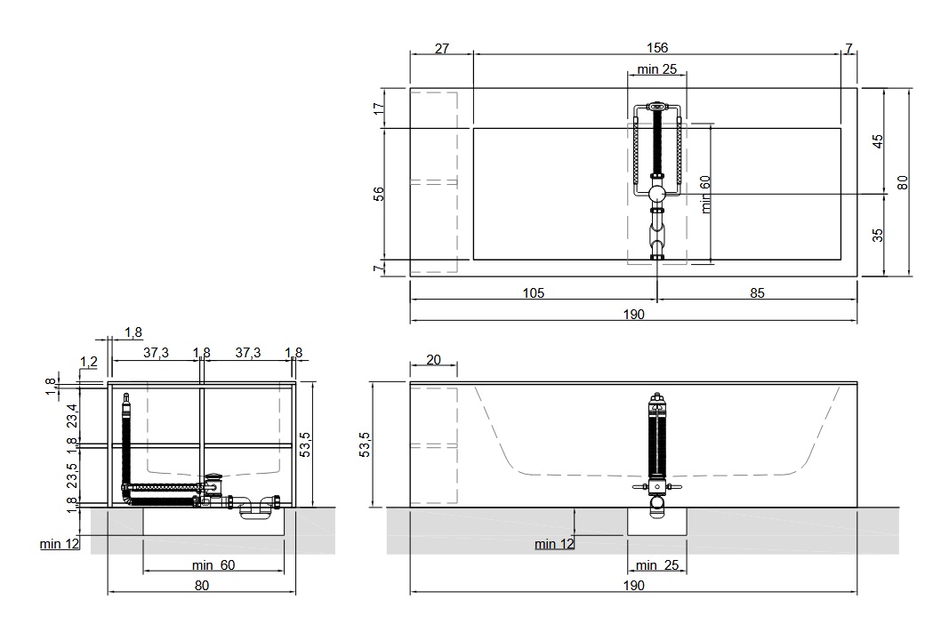 W komplecie z nóżkami regulacyjnymi i odpływem z korkiem ciśnieniowym