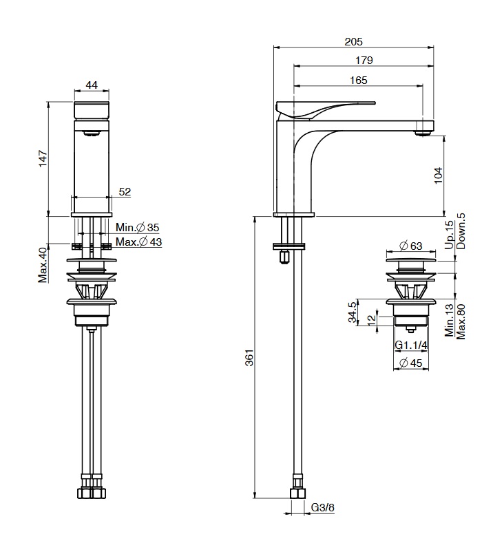 Carlo Frattini Quad Bateria umywalkowa jednouchwytowa Chrom F3721MCR.WS
