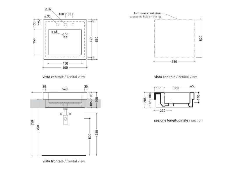 Flaminia Acquagrande Umywalka półwpuszczana w blat 60x55 cm Czarna 5052/INCNER