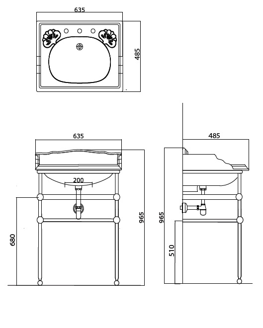 - Umywalka 3-otworowa 2000 (kolor biały, czarny, Blu Pattern lub Garden)