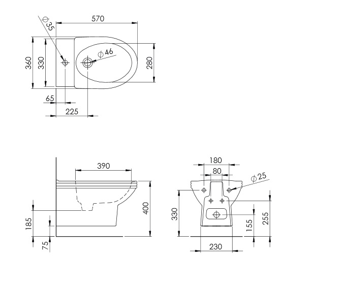 Gentry Home Victorian/Belgravia Bidet wiszący z otworem na baterię Biały 2014