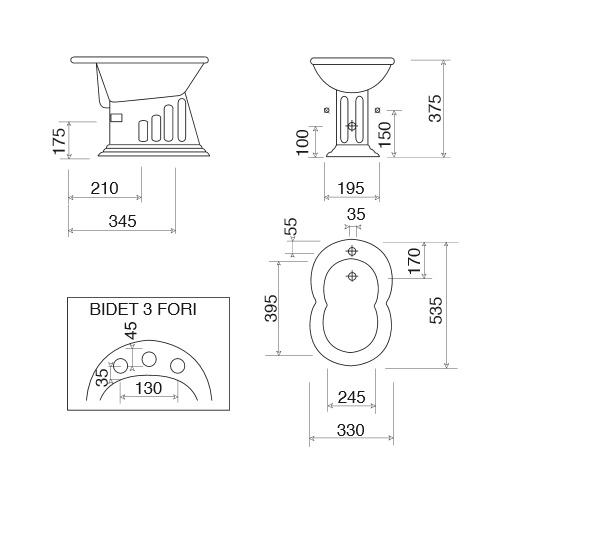 Możliwość zamówienia bidetu z trzema otworami na baterię na zapytanie.