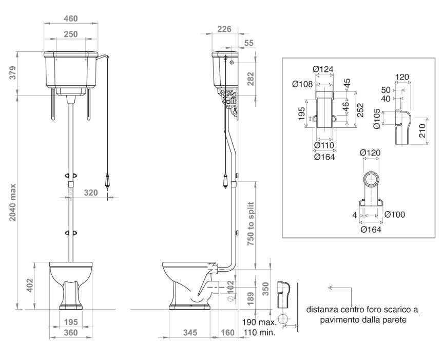 Gentry Home Claremont Spłuczka wysoka do miski WC stojącej Biała 2207