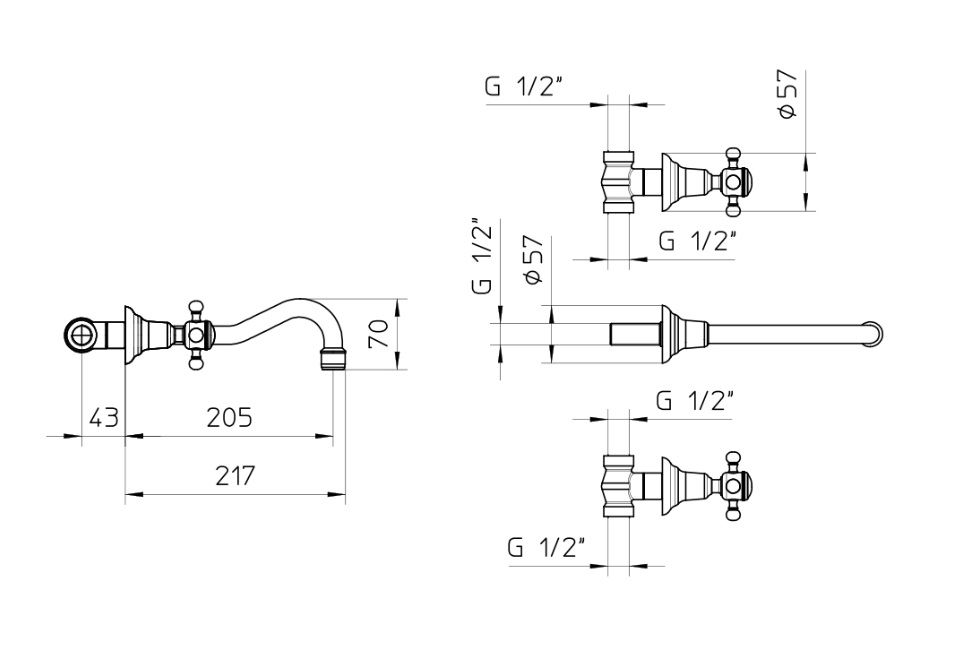 Gentry Home Mayfair Bateria umywalkowa podtynkowa 3-otworowa Chrom 8072