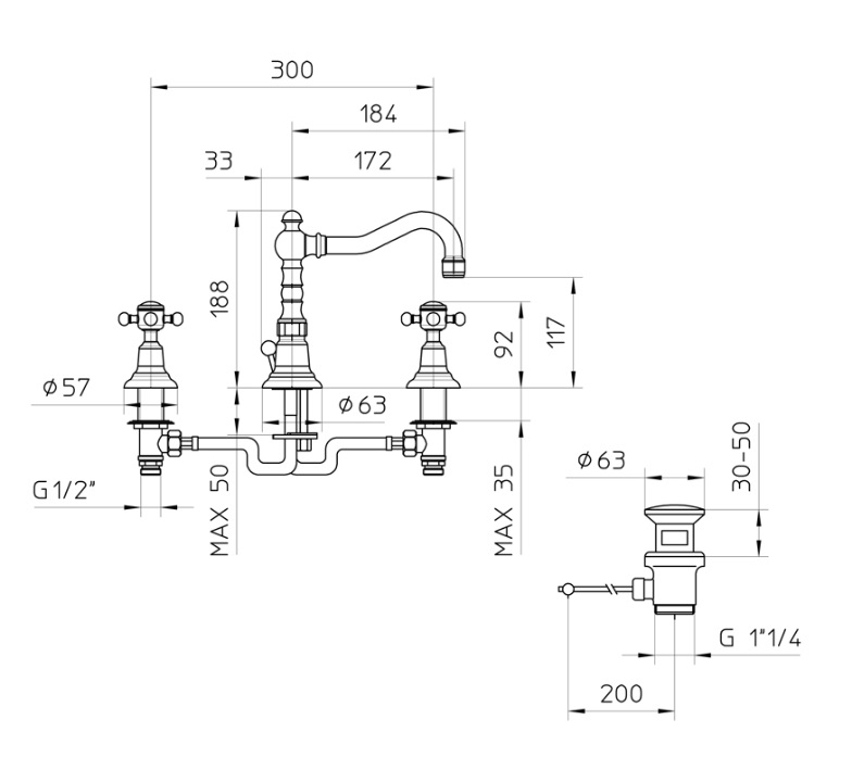 Gentry Home Antique Bateria umywalkowa 3-otworowa Chrom 8248