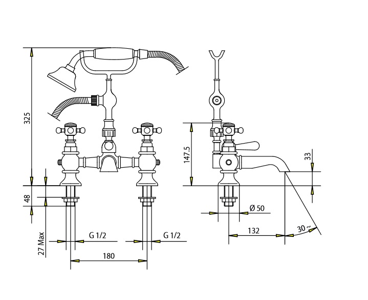 Gentry Home Antique Bateria wannowa sztorcowa ze słuchawką prysznicową Chrom 8264