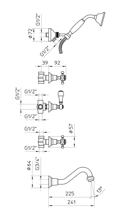 Gentry Home Antoque Bateria wannowa podtynkowa ze słuchawką chrom 8280
