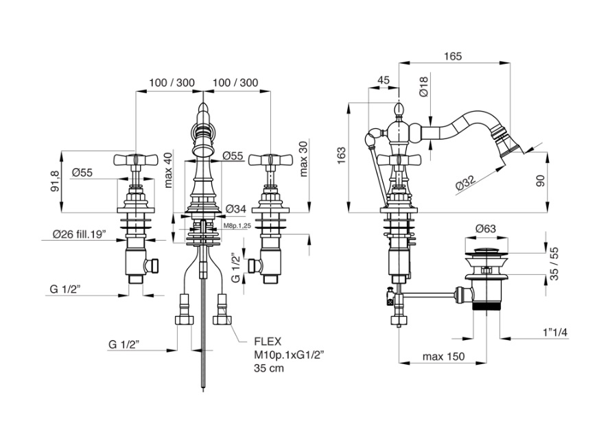Gentry Home Ascot Bateria bidetowa 3-otworowa Chrom 8785