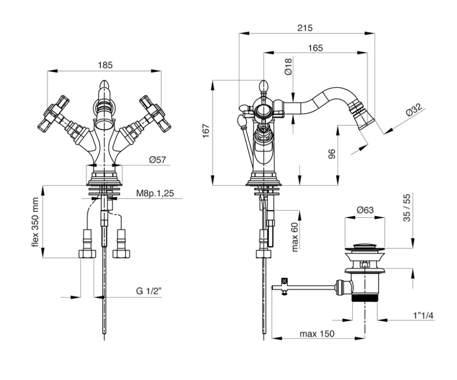 Gentry Home Ascot Bateria bidetowa jednootworowa Chrom 8760